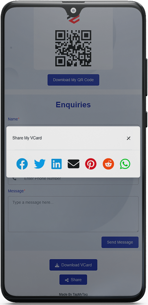 Share Your Business Information with your prospects directly via SMS, Email or any other way.